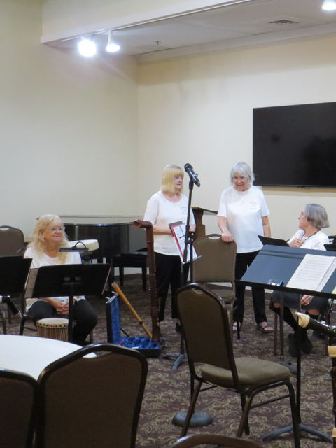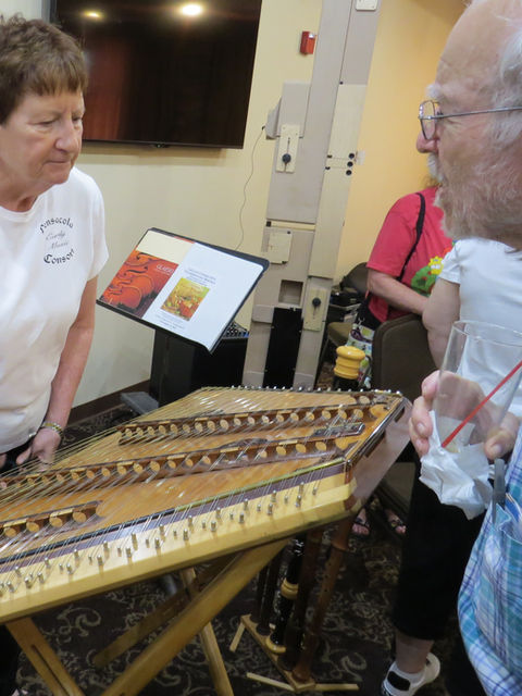 The July 9th program was presented and performed by the Pensacola Early Music Consort. The Consort performs music of the late medieval and Renaissance periods, approximately 1400-1600, music that would have been familiar to Don Tristan De Luna. Director Charles Tucker demonstrated and explained the various instruments played in the Consort, including recorders from the soprano through the great bass, the six-foot sub-bass. The sixteen-foot sub-sub bass, is currently one of only seven such instruments in the world and the only one in North America. Additional instruments were gemshorns, krummhorns, a hammered dulcimer and various percussion instruments.